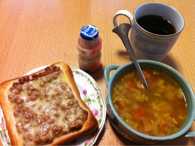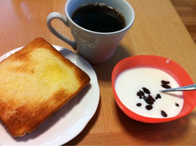 朝食7:00:トースト、ヨーグルト、みかん、コーヒー