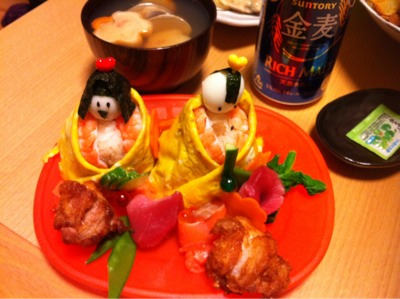 夕食21:30:鶏そぼろ定食ごはん、煮浸し、ビール1本、焼酎水割り2杯