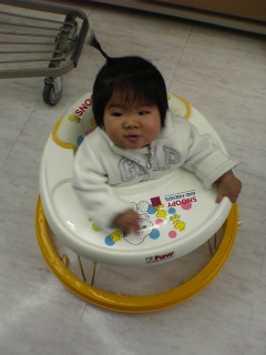 近所の西松屋でお買い物。ちょっと歩行器に乗せてみたらかなりご機嫌な様子。まだ歩けないけどかなり楽しそうに歩いてました。家には置けないからここでイメージトレーニングしようね!