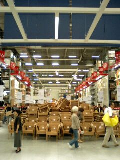 なんとなく親近感を覚える単語です。固有名詞ではありますが人の名前ではなく、先月港北にオープンしたインテリアショップの名前です。安さと品揃えで大人気で週末ともなると周辺ば大渋滞となる迷惑なお店です。例によって我が家は早朝から出掛けます。目標はオープン前1時間に到着すること。うちから20分足らずなので大したことはありません。駐車場には余裕で入れましたが既にオープンを待つ列ができてました。このお店ちょっと変わっていて、最初はかなりリアルにレイアウトされた展示場を見て周り、気に入ったものがあればその商品の番号をメモってレジ前の巨大な倉庫から自分でピックアップするといった感じ。入り口やあちこちにメモ用紙と鉛筆を置いています。有料で配送・組み立てサービスはありますが、基本は全てセルフ。それが安さの秘密のようです。オープン間もないので混雑は仕方ないですがこれまで日本になかったタイプのインテリアショップで結構楽しめると思います。