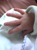 いい写真ですね。拡大して見られないのが残念です。パパの指をつかんでるショットを是非撮っておいてください。感動的ですよ。