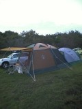 ヨーレイカのシンドームというテントに、コールマンの3ポールワイドスクリーンタープをドッキング!