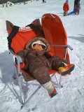 ワカチャンを椅子に寝かせてマナタンとソリしたり雪だるま作ったり。