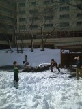 昼食を食べた後は腹ごなしにみんなで雪合戦。