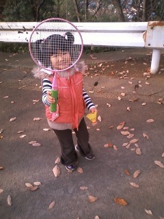 で、思いついたのが、落ち葉をラケットに乗せて落とさないようにして遊ばせる方法