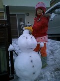 5:30に起床して早速雪だるま作りしました! 雪アンパンマンです。