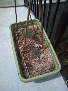 トマトは日当たりが良いところがいいのでプランターに植えて日当たりの良いところに置きました。