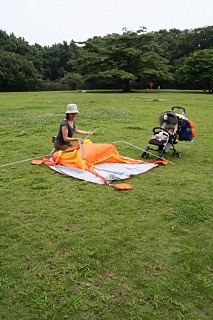 今日は近所の公園へお散歩へお出かけ。一人でもお散歩の時に使えるように、奥さんについ最近購入したサンシェードを組み立てもらいましたが、やっぱり女性一人で組み立てるのは難しいかなぁ。それにしても蒸し暑い一日でした。日中はベランダに打ち水するといくぶん涼しい感じでしたが、さすがに風呂上りは暑いのでエアコンをかけてしまいました…