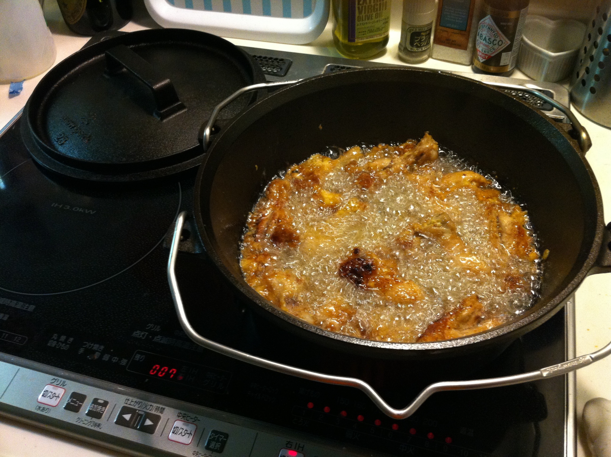 普通の揚げ物と違うところは、蓋をすること。蓋をして蒸し焼きにするんです。ダッチオーブンならではの調理法だと思います。