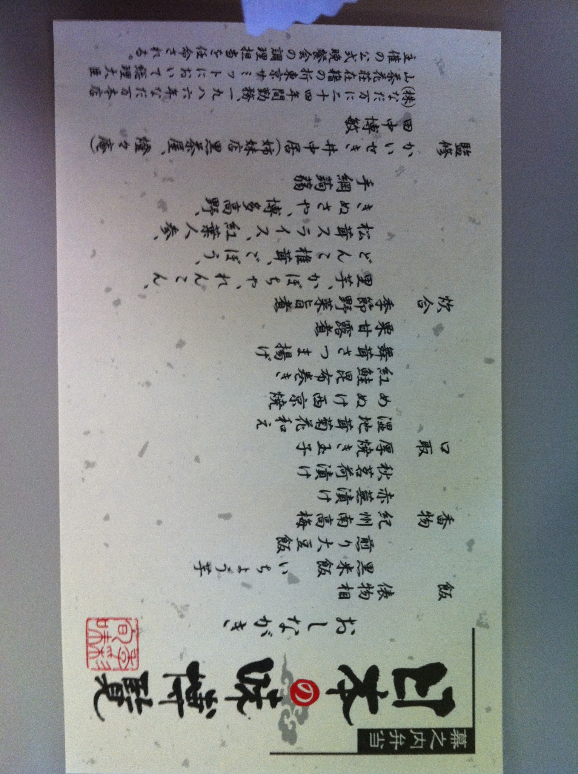 中にはこんなお品書きも入っています。方向が変ですが。