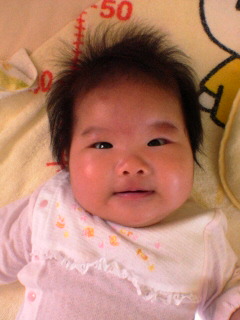 昨日で生後100日を迎え順調に成長している我が子ですが、既に7Kgを超えています。体重と身長でみると5ヶ月くらいの標準らしいです…デカイです。息を顔を吹きかけるとなんだか楽しいらしくておもしろい表情をするようになりました。おもしろがって何度もやると興奮して汗だくになるのでほどほどにしてますが、楽しいのでついつい…息をフーフーすると…