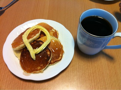朝食7:00:キャラメルパン、ヨーグルト、コーヒー
