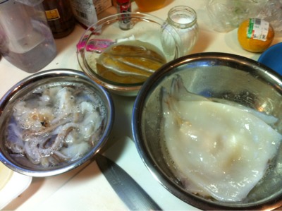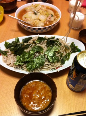 夕食20:00:鶏つみれ鍋、赤飯、ビール(144)