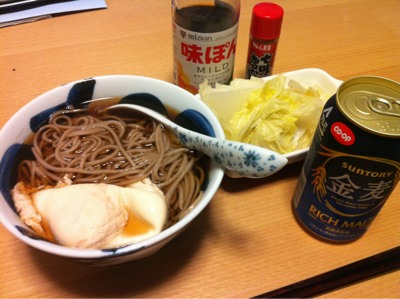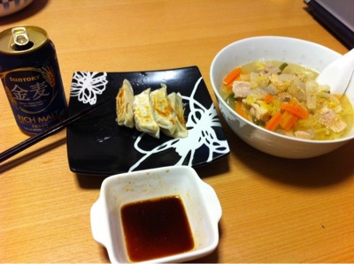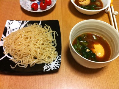 夕食21:00:つけ麺、りんご、ビール1本(144)