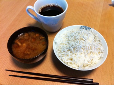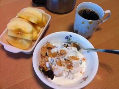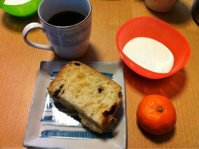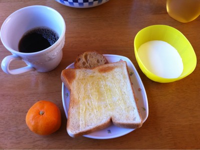 朝食6:30:トースト1枚、ヨーグルト、コーヒー