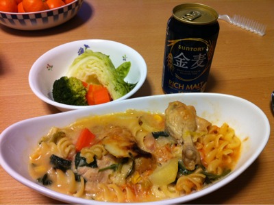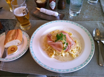 昼食12:00:パスタ、生ビール