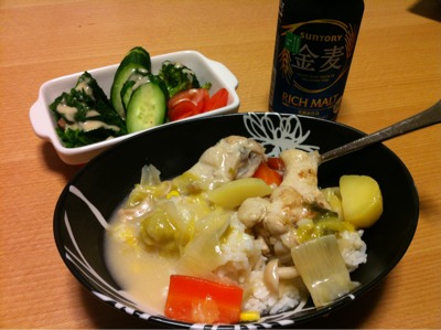 昼食12:00:カレーライス&シチュー、ビール1本