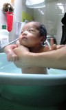 いな>洗面所のボールも考えたけどやっぱ低くで中腰の体制がきつかったよ。沐浴は生まれた翌日から毎日だよ。入院中は病院で入れてもらってたみたい。